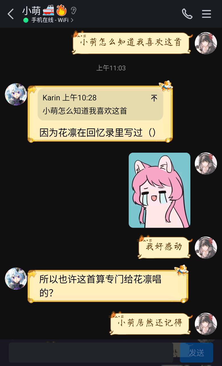 是什么支持了我不后悔呢?现状也很好当然是一个理由,但更重要的是我的文字一直都有人认可,这让它们可以免于被赋予其他的意义,也由此免于被异化。我相信我为了谋生而写出来的东西和现在在频道里写出来的东西相比,一定是后者更能让我满意,把兴趣当工作就是会有这样的问题。我是靠身边的人活下来的,是其他人的认可让我有了笔耕不辍的动力,我的文字才能摆脱”目的“和”读者“的束缚。所以昨天写完那一大段文字后,我抚摸着滚烫的面颊去客厅里吹了五分钟冷风让自己冷静下来,然后和 uuz 说”好久没写了,一次释放出来如同精神高潮“,被牛牛夸了之后开心了很久翻来覆去没睡着。故而在我人生的前十几年里,尽管身边的人换了一拨又一拨,但我永远都能从文字中得到快乐,做自己小世界里的文学少女。